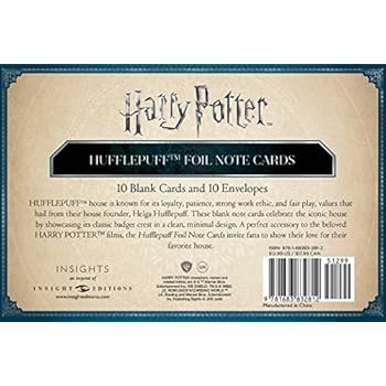 Celebrate the loyal house of HUFFLEPUFF™ with a set of ten Hufflepuff crest note cards, the newest addition to Insight Editions’ best-selling HARRY POTTER™ stationery series!Hufflepuff House is known for its loyalty, patience, strong work ethic, and fair play, values that hail from their house founder, Helga Hufflepuff. These blank note cards celebrate the iconic house by showcasing its classic badger crest in a clean, minimal design. A perfect accessory to the beloved Harry Potter films, the Hufflepuff Crest Foil Note Cards invite fans to show their love for their favorite house.