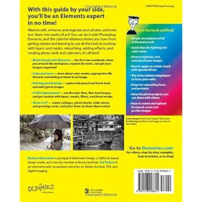 From the Back Cover 9 BOOKS IN 1 Getting Started with Elements Organizer Fundamentals Image Essentials Selections Painting, Drawing, and Typing Working with Layers and Masks Filters, Effects, Styles, and Distortions Retouching and Enhancing Creating and Sharing with Elements With this guide by your side, you’ll be an Elements expert in no time! Want to edit, enhance, and organize your photos, and even turn them into works of art? You can do it with Photoshop Elements, and this colorful reference shows you how. From getting started and learning to use all the tools to working with layers and masks, retouching, adding effects, and creating photo cards and calendars, it’s all here! Make friends with Elements — the first two minibooks show you around the workspace, explain the tools, and get your images organized Color and more — learn about color modes, appropriate file formats, and adding artwork to an image Painting and drawing — explore the pencil and brush tools and add type to images A little improvement — use the auto-fixes, fine-tune images, and get creative with layers, masks, filters, and blend modes Show it off — create collages, photo books, slide shows, and greeting cards, and print them or share them online Open the book and find: Simple descriptions of all of Elements tools Quick fixes for lighting and color issues How to organize, sort, and search your images How to apply an artistic touch with special effects The tricks behind using layers to focus your edits Steps for retouching faces and portraits Ideas for photo projects you can share with others How to create and upload Facebook cover and profile images Read more About the Author Barbara Obermeier is principal of Obermeier Design, a California-based design studio, and a faculty member at Brooks Institute. Ted Padova is an internationally recognized authority on Adobe Acrobat, PDF, and digital imaging. Read more